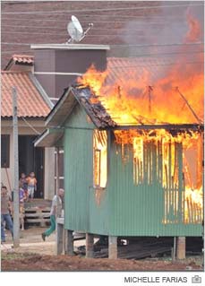 Uma casa de madeira no Demboski foi reduzida a carvão na tarde desta quarta-feira, dia 10. O fato aconteceu na Rua São Francisco, no Loteamento Manchester. Ao Corpo de Bombeiros de Içara a emergência foi relatada por volta das 14h25. Um caminhão chegou a ser deslocado até o local, contudo, sem condição de evitar a perda total do imóvel. Foram utilizados 5 mil litros apenas para o controle das chamas e o rescaldo da estrutura de 60 metros quadrados. A mãe e a criança que estavam na casa não tiveram lesões.