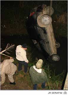 Um Celta em perseguição policial capotou na noite desta quinta-feira, dia 30. O fato ocorreu no bairro Tereza Cristina, onde o veículo buscava passagem por uma ponte e caiu no Rio Içara. O veículo tinha dois ocupantes. Foragido do Presídio Santa Augusta, E.M.N., de 26 anos, acabou baleado e foi conduzido pelo Samu. Já G. M. O. , de 25, foi levado à Delegacia de Içara.