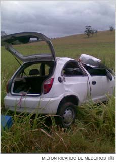 Um Celta de Içara tombou na margem da SC-487 por volta das 12h30 desta quinta-feira, dia 15. O veículo era conduzido por DVR, de 18 anos. Segundo testemunhas, ele perdeu o controle do automóvel e por isso saiu da pista que interliga Lagoa dos Esteves e a SC-444. Socorrido pelo Corpo de Bombeiros de Içara, o rapaz foi levado ao Hospital São Donato com ferimento lacerante na orelha, suspeita de fratura nas costas e também na costela.