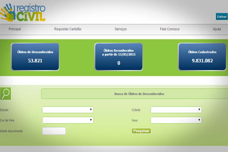 A Central Nacional de Óbitos de Pessoas Não Identificadas entra em funcionamento a partir desta quarta-feira, dia 20. Os dados serão disponibilizados em cartórios de registro civil de nove estados: São Paulo, Espírito Santo, Santa Catarina, Distrito Federal, Acre, Amapá, Mato Grosso do Sul, Goiás e Pernambuco. Entre os 10 milhões de cadastros existentes, cerca de 53 mil são de pessoas registradas como desconhecidas.
