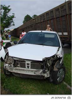 Um Clio de Içara foi atingido pela passagem do trem no Centro da cidade na manhã desta quarta-feira, dia 4. O veículo chegou a parar antes da linha férrea. Mas engalhou em um vagão e foi arrastado para o canteiro da Avenida Procópio Lima. O fato ocorreu por volta das 8h30 no cruzamento com a Rua Vitória. Ninguém ficou ferido.