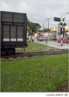 Um Corsa de Içara se envolveu num acidente ferroviário por volta das 17h30 desta quinta-feira, dia 27. O fato ocorreu novamente no cruzamento com a Rua Vitória, no Centro da cidade. E igualmente a outras colisões no local, congestionou o trânsito. Conforme o motorista de 22 anos, um veículo cortou a frente e, por causa disso, ele acabou impactado na traseira pela locomotiva.