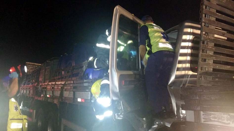 Um motorista de 47 anos foi resgatado entre as ferragens de um caminhão Ford Cargo de Maracajá por volta das 3h50 desta terça-feira, dia 5. Ele teve ferimentos lacerantes na perna e suspeita de fratura no tornozelo esquerdo, além de fortes dores torácicas. Após o primeiro atendimento prestado pelo Corpo de Bombeiros de Içara, foi encaminhado ao Hospital São Donato. O impacto do caminhão ocorreu no trecho da BR-101 e Esplanada contra a traseira de um Ford Cargo de Araranguá carregado com galões de produtos químicos. A carga foi preservada. O motorista, por vez, não teve ferimentos.