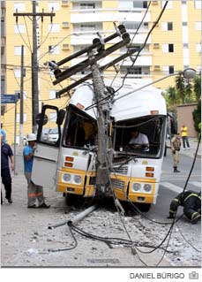 A Polícia Militar passava pelo local no momento da colisão e repassou as orientações aos ocupantes, que permaneceram no interior do veículo até a Celesc realizar o desligamento da energia. A área foi isolada pelo Corpo de Bombeiros. O condutor, identificado como A.M., de 32 anos, comentou que o motorista de um Fiesta cortou a sua frente. “Para defendê-lo e os outros carros, e para não matar ninguém que estivesse passando, desviei o ônibus, e deu nisso tudo”, sublinha o motorista, acrescentando que trafegava em baixa velocidade.