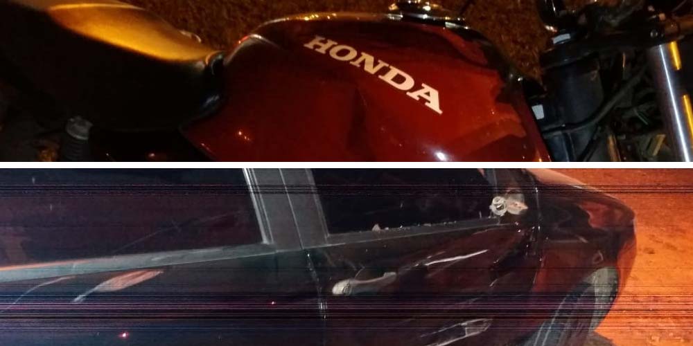 Abalroamento entre moto e carro foi registrado por volta das 20h50 desta quinta-feira