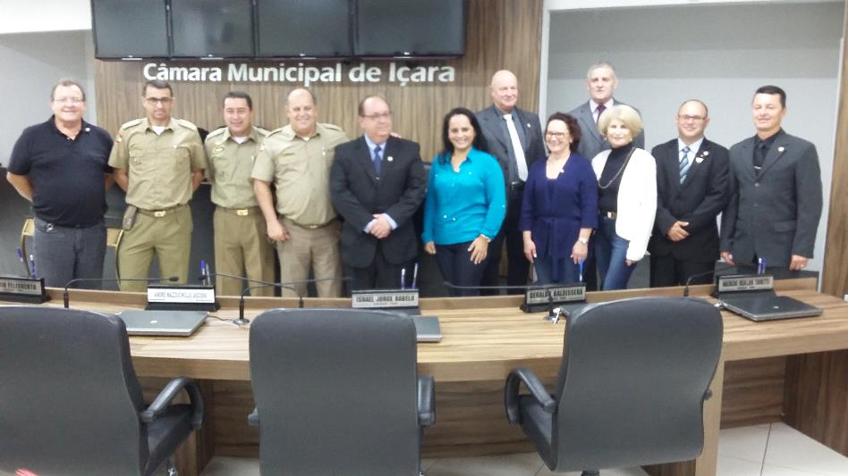 "Se não fosse a comunidade trabalhar junto, e pessoas como Celso, certamente o nível de segurança de Içara não estaria como está. Os fatos negativos ainda ocorrem, mas ainda esta semana, olhando o mapa de incidência de homicídios no estado, Içara está em 23ª lugar proporcionalmente a população que tem", enaltece o comandante da 6ª Região da Polícia Militar, coronel Cosme Manique Barreto. A cerimônia contou também com a presença na mesa do comandante da Guarnição Especial da Polícia Militar de Içara, coronel Darci Rodrigues e do presidente do Legislativo Alex Ferreira Michels (PSD).