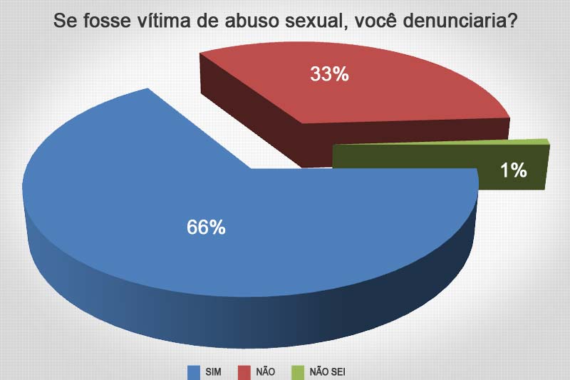 Ao todo, 66% garantiram que se estivessem nesta situação levaria o caso à polícia. Entretanto, outros 33% apontaram que ficariam em silêncio e 1% demonstrou não saber qual a atitude tomaria. Ao todo responderam a pergunta 90 pessoas entre os dias 18 e 25 de maio.