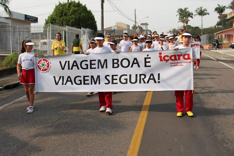 Alunos da rede municipal, servidores da Prefeitura de Içara, integrantes da sociedade organizada e de empresas desfilaram com faixas e cartazes na Rua Marcos Rovaris nesta quinta-feira, dia 24. A movimentação pela manhã foi para chamar atenção ao tema da Semana Nacional do Trânsito: Seja você a mudança no trânsito. O evento encerrou com a simulação de uma mini cidade e o desencarceramento de um motorista na Praça do Imigrante.