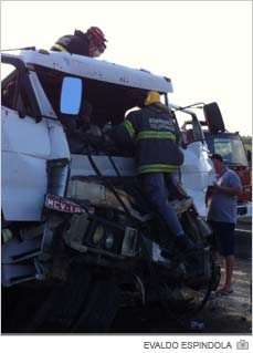 Um acidente com duas vítimas presas em ferragens mobilizou os bombeiros voluntários de Jaguaruna, além de militares de Tubarão, Içara, Morro da Fumaça e o Samu nesta segunda-feira, dia 16. O acidente ocorreu por volta das 17h40 na pista Sul/Norte da BR-101 em Sangão. O condutor de um caminhão Wolksvagem foi encaminhado para atendimento médico sob suspeita de fratura no membro inferior. Ele ocupava a cabine junto com um caroneiro até colidir na traseira de um Mercedes Benz. Neste segundo caminhão não houve feridos.