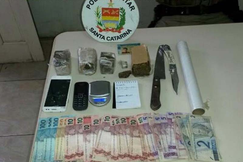 A Polícia Militar apreendeu maconha e dinheiro na abordagem de um Pálio no bairro Jardim América por volta das 17h30 desta quarta-feira, dia 27. O carro denunciado estava num posto de combustíveis na Rodovia Deputado Paulino Búrigo (SC-445) com dois ocupantes de 24 e 26 anos. Somado ao que foi recolhido na residência de um deles, a ocorrência resultou na apreensão total de 450g de maconha, R$ 979, uma balança de precisão e uma caderneta de anotações. Ainda conforme divulgado pela corporação, todo o material foi encaminhado para a delegacia.