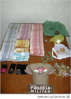 Já em vistoria na casa, a PM prendeu também a proprietária T.F.S., de 55. Na bolsa dela e numa gaveta de roupas íntimas estavam mais 15 pedras de crack, dois torrões de maconha e R$ 802. Foram recolhidos ainda quatro celulares e um pote com jóias e semi-jóias. "A feminina assumiu ser a proprietária da droga e objetos apreendidos. O casal, a droga e os produtos apreendidos foram encaminhados a DP, onde foi lavrado o flagrante por tráfico", pontua Gava.