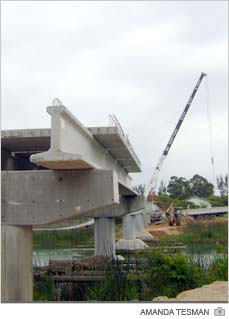 Se não fossem as férias concedidas pela Confer aos funcionários, a ponte já estaria pronta. Pelo menos foi esta a explicação que recebeu o presidente da comissão para a construção da ponte, Wagner Pizzetti. “Os trabalhos ficaram parados por quase duas semanas. Sendo que as máquinas voltaram a operar nesta na segunda-feira, dia 17”, destaca acrescentando que, para o término, falta a construção da proteção lateral para os pedestres e acabamento final.