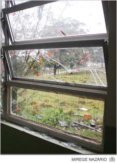 "As paredes receberam pintura no início do ano e os vidros foram trocados há três meses. Agora não sabemos quando que será arrumado. Dispomos de poucos recursos. Se tiver chuva e vento vai atrapalhas as aulas", relata a coordenadora pedagógica Mirege Nazário. A escola atende atualmente 330 estudantes de ensino fundamental.