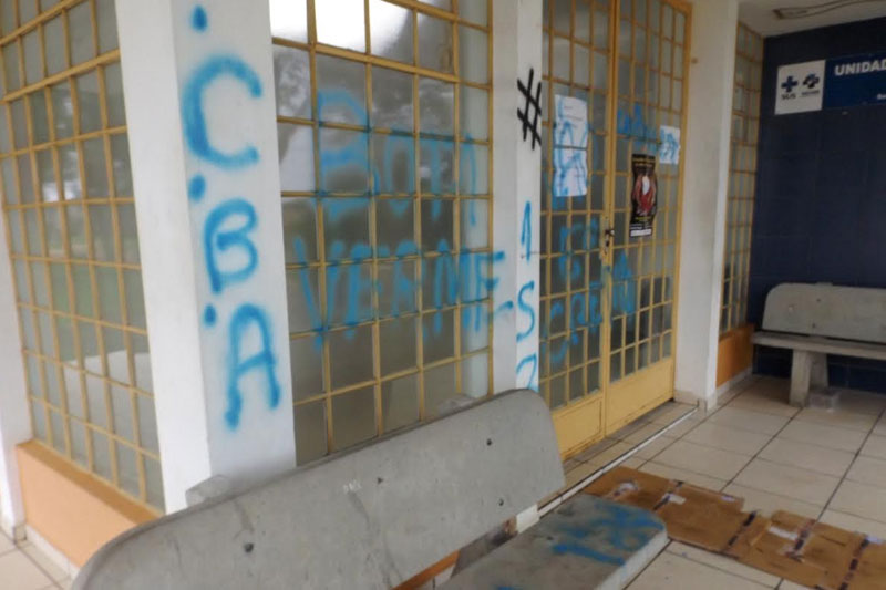 A fachada da Estratégia de Saúde da Família do bairro Aurora foi alvo de pichações. A ação de vandalismo encobriu parte das paredes, portas, vidros e até mesmo o banco. Restos de comida também foram encontrados no local. Este é o segundo caso registrado em menos de 20 dias. Em novembro pó químico de extintor foi despejado pela janela na sala de vacina.