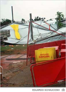 Houve veículos atingidos e pessoas com pequenos ferimentos. Os atendimentos foram prestados pela equipe médica do próprio evento. A orientação repassada pelos bombeiros aos organizadores foi apenas para rebaixar outras tendas dispostas no local para evitar danos maiores.