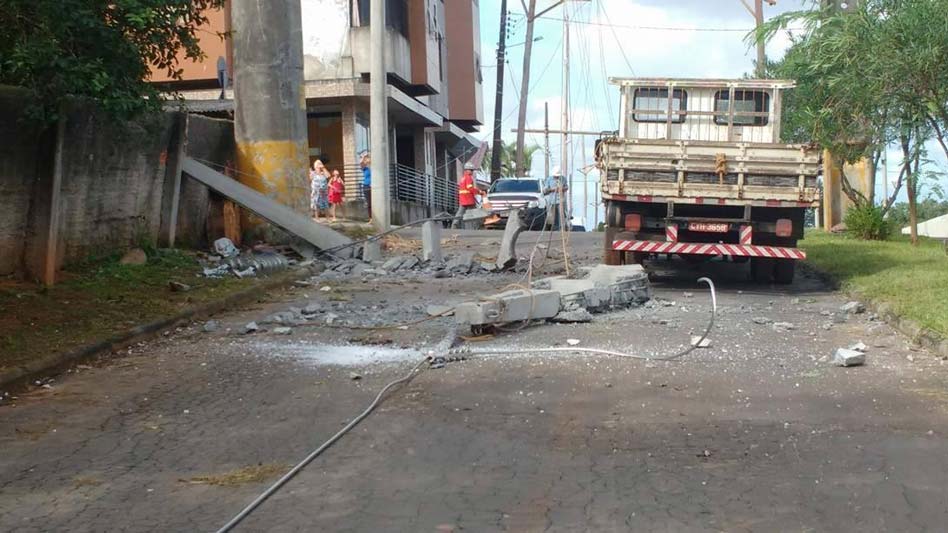 O fato ocorreu durante manutenção da linha 69Kv realizada pela Celesc no bairro Primeiro de Maio por volta das 15h10. Os cabos despencaram em cascata junto com a estrutura de três braços de concreto da torre de transmissão da companhia estadual. Além de atingirem um muro, houve também a interrupção do tráfego na Avenida Lauro Müller.
