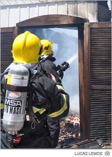 O fogo que alimentava uma churrasqueira na Rua Santos Dumont consumiu toda uma casa na tarde desta terça-feira, dia 6. Conforme a proprietária Leci Feliciano, as chamas chegaram ao teto da garagem e logo se espalharam por outros cômodos da residência no bairro Nossa Senhora de Fátima. Ela ainda tentou evitar o incêndio, no entanto, não tinha água na tubulação. No local estava também a filha de 17 anos. Ninguém se feriu.