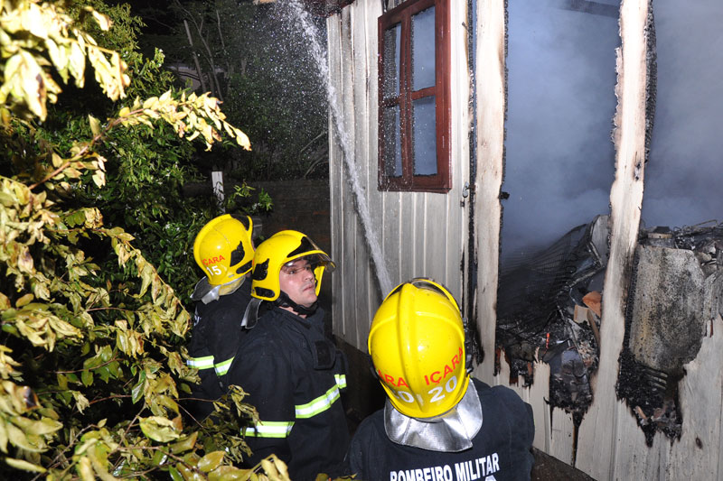 Alguns dos eletrodomésticos ainda puderam ser removidos. Mas da estrutura, apenas o assoalho, parte das paredes de madeira e uma construção anexa resistiram ao incêndio no bairro Tereza Cristina na noite deste sábado, dia 5. Segundo relatado ao Corpo de Bombeiros de Içara, as chamas iniciaram após ter faltado energia elétrica, possivelmente, em consequência de um curto-circuito na própria residência.