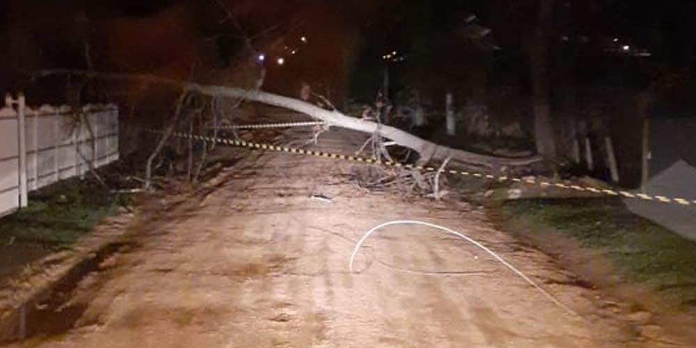 Queda de árvore bloqueou uma das ruas do bairro e também atingiu a rede elétrica