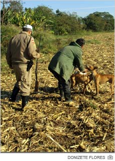 O crime foi constatado em uma plantação de milho. Conforme os policiais Airton Nunes de Souza e Donizete Flores, com o acusado foram encontrados três cães de raça, uma espingarda, quatro cartuchos intactos de calibre 32 e um estojo de calibre 20 já deflagrado.