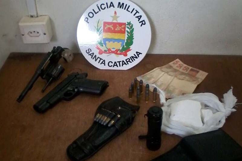 Um homem de 32 anos foi denunciado e acabou detido pela comercialização de droga na tarde desta terça-feira, dia 13. Na abordagem pessoal realizada na Rua Antônio Colonetti a Polícia Militar achou uma bucha de cocaína que seria vendida na Rodovia Deputado Paulino Búrigo (SC-445). Já na casa no bairro Jardim Elizabete foram apreendidos também um revólver 38, um simulacro de pistola, 15 munições, R$ 150 em dinheiro e cerca de 100g da droga. Todo o material foi encaminhado para a delegacia por volta das 18h.