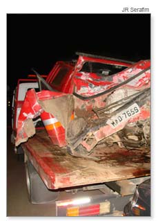 Uma colisão por volta das 22h de domingo deixou J.A.F., de 28 anos, preso às ferragens de uma Pampa no trecho do bairro Liri da SC-444. Conforme o sargento Eraldo, do Corpo de Bombeiros de Içara, o homem apresentou ferimentos na cabeça e face. Já no outro veículo, uma F1000 também com placas de Içara, o motorista J.A.E., de 55 anos, apresentava a suspeita de fratura na clavícula. Uma caroneira ainda relatou dores na região cervical. Todos foram levados ao Hospital São José, em Criciúma.
