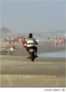 O registro de condutores de moto sem equipamento de segurança é comum. Ocorre tanto nas ruas da comunidade quanto na orla. A imagem do Canal Içara comprova isto. O motorista flagrado até tinha o capacete, todavia, portava irregularmente no braço enquanto transitava em meio aos banhistas no sábado, dia 21.