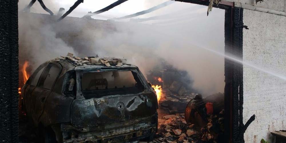 Incêndio atinge garagem com veículo em Terceira Linha