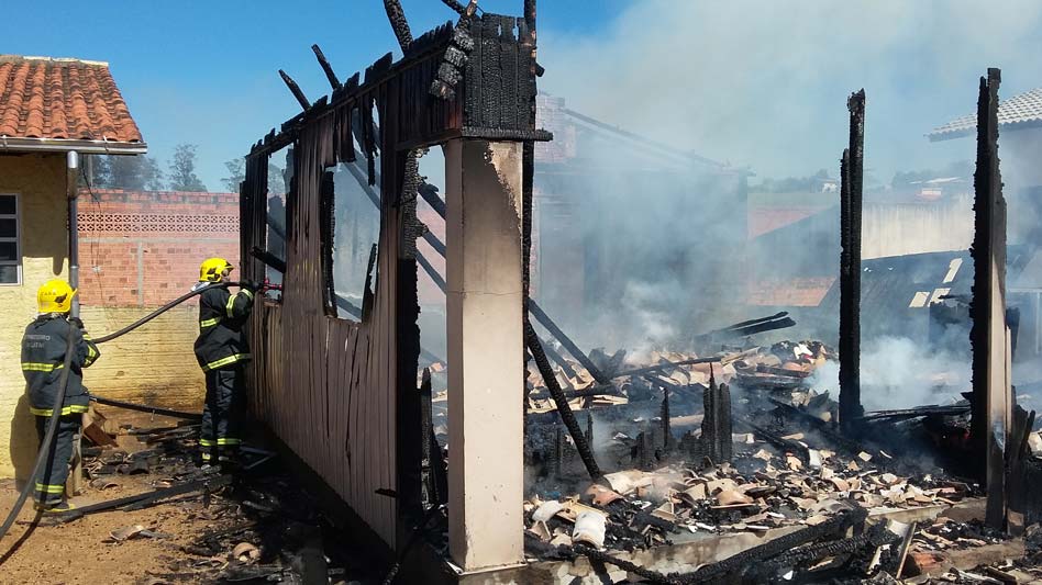 Uma residência com aproximadamente 30 metros quadrados no bairro Demboski foi totalmente destruída em um incêndio na manhã desta quinta-feira, dia 3. A casa era ocupada há dois meses por um casal e uma criança. A mãe, de 32 anos, e o menino, de um ano e cinco meses, estavam no local, mas saíram ao sentirem o cheiro da fumaça e conseguiram se salvar sem ferimentos. As causas são desconhecidas.