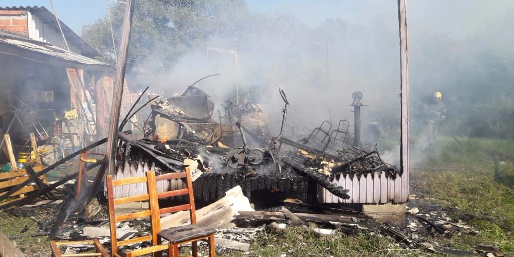 Uma edificação de aproximadamente 24 metros quadrados utilizada como depósito em Balneário Rincão foi totalmente tomada pelas chamas na manhã desta quarta-feira, dia 18. Conforme relatado pelo proprietário, as chamas podem ter iniciado por um curto-circuito enquanto estava numa loja de material de construção próxima.