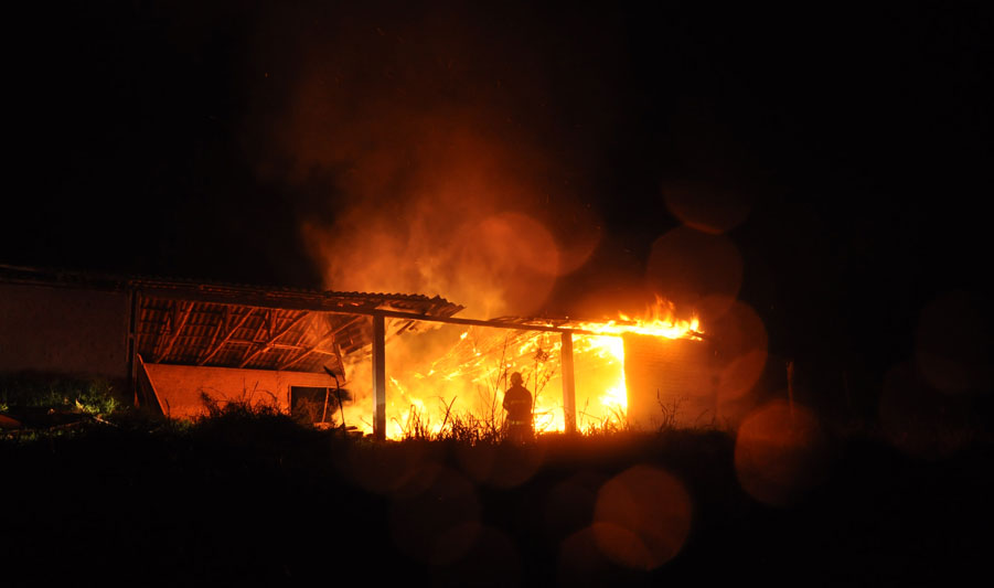 Um galpão no bairro Cristo Rei teve metade da estrutura destruída na noite deste sábado, dia 6. O incêndio começou pela vegetação, atingiu colunas de madeira e desabou o telhado, mas não chegou ao estoque de tábuas em um depósito ao lado devido ao combate efetuado pelo Corpo de Bombeiros de Içara. Foram usados ao todo 7 mil litros de água das 22h até 0h10.