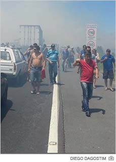 “Fiquei mais de uma hora na fila. Ninguém conseguia parar perto. Os bombeiros tiveram que entrar no meio da fumaça com cilindros de oxigênio”, relata o empresário içarense Diego Dagostim. A liberação do tráfego foi realizada pela Polícia Rodoviária Federal por volta das 15h10. Já o combate às chamas na margem Sul/Norte com água e batedores se estendeu até por volta das 16h.