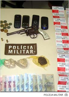 "Além disso, dentro de um guarda-roupas, foram encontrados vários aparelhos eletrônicos, 76 cartões de recarga de celular, dezenas de DVDs piratas, quatro aparelhos celulares e R$ 119 em cédulas diversas", destaca o sargento da Guarnição Especial de Içara, Alexandre Fontoura. "Todos os masculinos, identificados como C.C. (20 anos), S.M.F. (21). F.N.C. (26), E.S.R. (25) e dois adolescentes, de 16 e 17 anos, foram presos em flagrante e conduzidos a Delegacia", pontua.