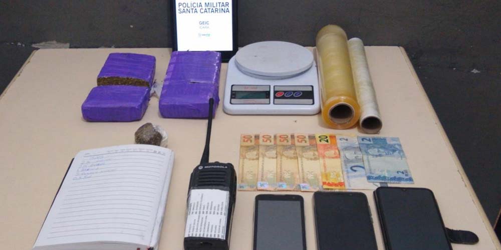 Polícia Militar apreendeu 857 gramas de maconha, uma balança de precisão e utensílios para embalagem da droga