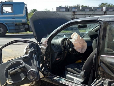 Corpo de Bombeiros resgata motorista presa em veículo após capotagem