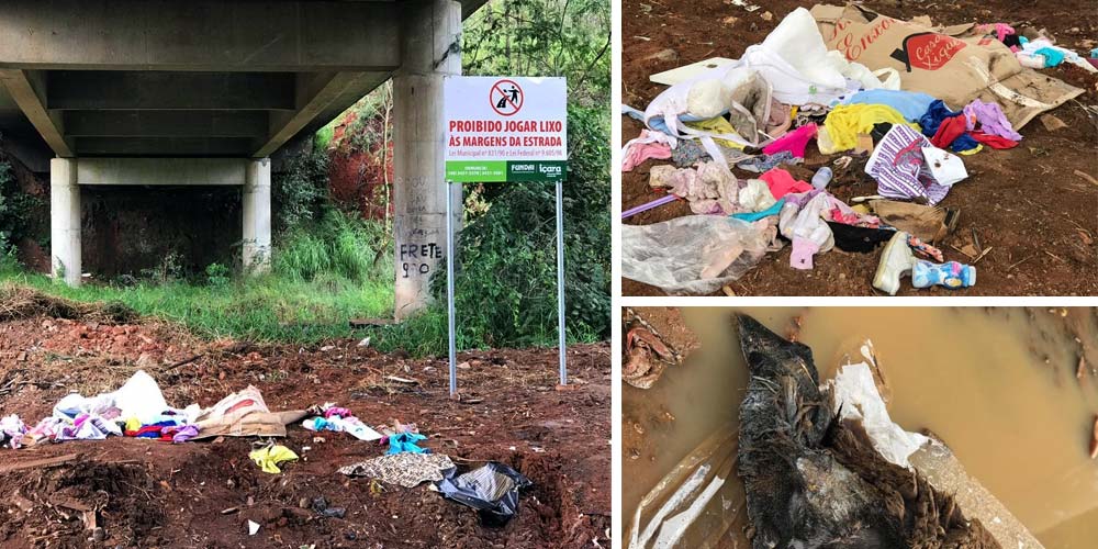 Menos de uma semana após o mutirão realizado pela Fundação do Meio Ambiente de Içara, resíduos sólidos voltaram a ser descartados nas margens da Avenida Procópio Lima. Desta vez, roupas, sapatos, brinquedos e até um cachorro morto foram jogados aos pés da placa, inserida inclusive com o propósito de alertar sobre a atitude criminosa. passível de multa a partir de R$ 500 para pessoas físicas e R$ 5 mil para pessoas jurídicas (empresas).