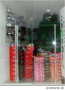 A vitrine de uma loja de calçados no bairro Jardim Elizabete foi alvo criminoso nesta última madrugada. A empresa na Rua Antônio Guglielmi teve o vidro estilhaçado. E, quatro pares de tênis acabaram furtados por um rapaz de bicicleta. Com a mão ensangüentada, conforme rastro deixado em frente da loja, o ladrão fugiu em direção a um milharal. O fato foi flagrado e alertado à Polícia Militar por moradores próximos por volta das 5h30. Trata-se do segundo crime registrado na mesma rua em menos de uma semana.