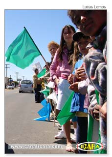 De acordo com a Polícia Rodoviária Estadual, cerca de 500 pessoas, com faixas e cartazes, fecharam na manhã do feriado de quinta-feira, 15, a rodovia Paulino Búrigo, que dá acesso ao Balneário Rincão. O bloqueio durou cerca de 40 minutos e foi montado no bairro Pedreiras. Dois ônibus auxiliaram o transporte dos manifestantes.