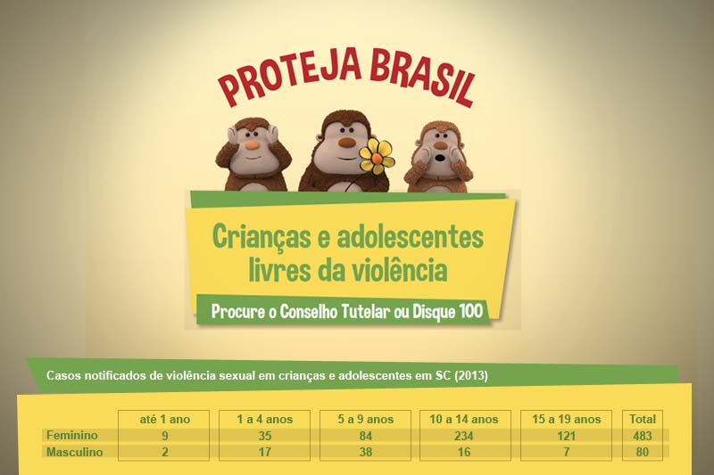 Somente em 2013 foram notificados 563 casos de violência sexual contra crianças e adolescentes em Santa Catarina. Desse total, 85% ocorreram com meninas. Os números da Diretoria de Vigilância Epidemiológica servem de referência para a importância do Dia Nacional de Combate ao Abuso e à Exploração Sexual de Crianças e Adolescentes [18 de maio].