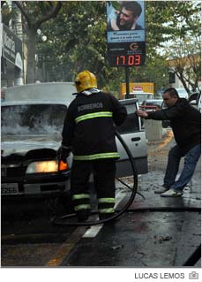 Servidor da Prefeitura de Criciúma, Antônio Viana Rodrigues explica que estacionou o veículo para ir até a Lotérica. Mas ainda antes de deixar o local o carro havia falhado. Por isso, trocou o combustível do gás natural veicular para a gasolina. "Quando voltei já estava pegando fogo", relata.