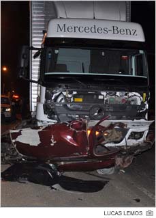 Após perder o controle do veículo, rodopiar na pista e colidir contra um Mercedes Atego 2426 de Criciúma, Fernando Gomes de Jesus perdeu também a vida na madrugada deste sábado, dia 3. O Corsa de Criciúma conduzido por ele seguia na direção Oeste/Leste. Já o caminhão estava na pista oposta. O impacto resultou no óbito ainda no local do jovem de 25 anos morador do bairro Mareli, em Içara. O acidente aconteceu por volta das 4h20 no trecho da Rodovia Deputado Paulino Búrigo (SC-445) no Liri.