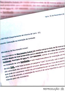“Há dois meses procurei o Departamento de Trânsito na Rodoviária para solicitar uma lombada em frente a minha casa, porém solicitaram um ofício com assinaturas dos moradores. Assim fiz e levei no local. Solicitaram então que eu entregasse na Secretaria de Obras”, relata Fábio Mateus. “Transferi meu título para Içara justamente para ter moral de cobrar as coisas, mas sem sucesso”, completa.