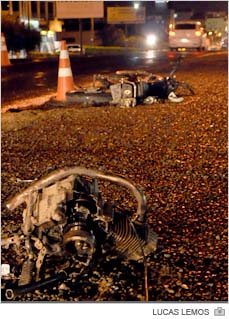O automóvel envolvido no fato seguia no trecho do bairro Primeiro de Maio em sentido ao litoral e não teve feridos. O carro foi puxado para o acostamento assim que houve o impacto. Mas já era tarde. A moto que seguia na direção contrária se chocou próxima a porta do motorista. Depois da colisão atravessou então a rodovia e chegou a ter o motor separado da carcaça.