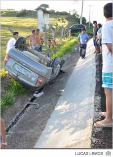 Além da pintura das lombadas, a capotagem de um Corsa gerou fila na Rodovia Deputado Paulino Búrigo (SC-445) por volta das 19h deste sábado, dia 21. O acidente ocorreu na descida do bairro Pedreiras, em Balneário Rincão. O automóvel de Içara seguia em direção ao litoral até perder o controle. Para evitar o choque contra outro veículo, o carro foi jogado então para a margem. Com isso saiu da pista e tombou no vão de escoamento pluvial na lateral do asfalto. Conforme o registro da Polícia Militar Rodoviária, o motorista DCV, de 25 anos, saiu ileso.