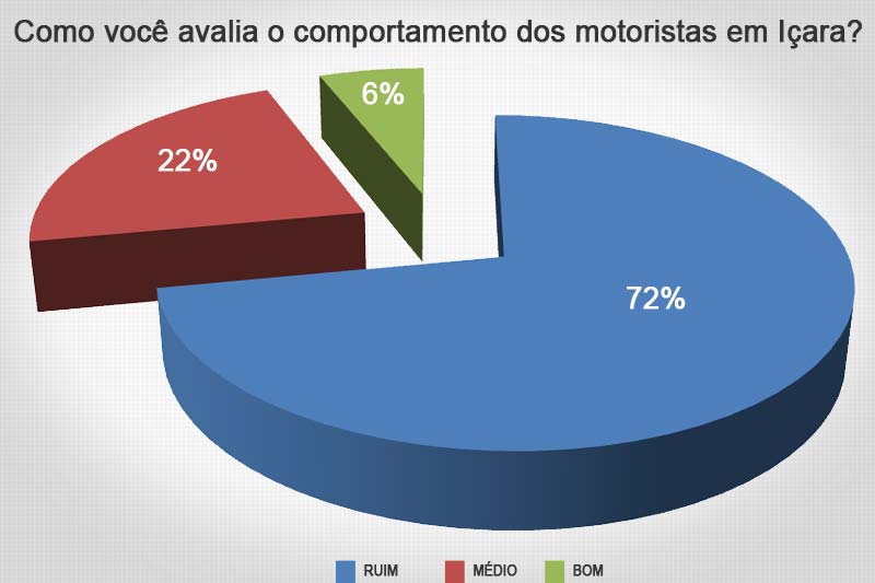 Como você avalia o comportamento dos motoristas em Içara? Para 72% dos internautas do Canal Içara os condutores da cidade são ruins. Outros 22% avaliaram como de nível médio e apenas 6% consideraram que são bons. A enquete envolveu ao todo 72 leitores entre os dias 14 e 21 de setembro.