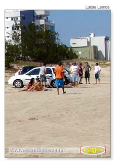 A invasão registrada neste último dia de primavera foi motivada pelo início do Coroa Bom de Bola. O estacionamento mais próximo da arena fica a quase 100 metros de distância. A solução encontrada pelos jogadores e expectadores foi estacionar os carros nas laterais da rua beira-mar e nas dunas.