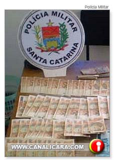 De acordo com o tenente-coronel, Márcio José Cabral, as cédulas recolhidas estavam no estepe e no banco traseiro de um carro. A denúncia partiu de um comerciante lesado em Araranguá. O bando era composto por três homens, sendo dois de Sombrio e um de Três Coroas, no Rio Grande do Sul.