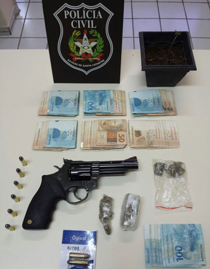 O trabalho em conjunto resultou na detenção de um homem de 31 anos já com passagem por posse de entorpecente. Com ele havia dinheiro, um revólver calibre 38 de numeração raspada e munições intactas. Foram apreendidas também porções de maconha embaladas e um pé da planta, além da somatória de R$ 6 mil.