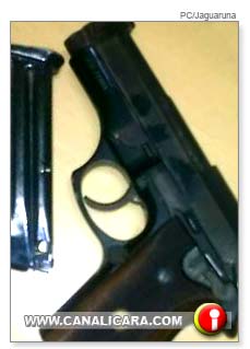 Em Operação conjunta entre policiais de toda a região, C.A.S. foi localizado com uma pistola 765 num Pálio Weekend em Olho D'água. Ele reagiu e acabou atingido por mais um tiro na perna. Junto no veículo estava a companheira F.C., de 36 anos, e C.C.C., de 20, noiva de M.D.