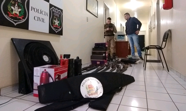 Sete armas de fogo, bebidas, jóias, calçados, equipamentos e um caminhão foram recuperados pela Polícia Militar em ação na madrugada desta quinta-feira, dia 2. A operação resultou também em um homem de 34 anos detido pelo envolvimento nos crimes. Conforme o tenente Tiago Lemos, o depósito de todo o material estava concentrado em uma residência em Esplanada. Todos os produtos foram encaminhados para a delegacia de Içara.